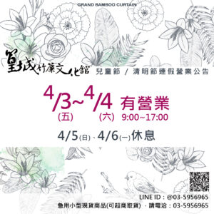 2026【兒童節 / 清明節連假營業公告】 4/3(五)、4/4(六)有營業,時間9:00~17:00; 4/ [...] [...]