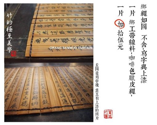 台灣本土竹製作,手工精緻磨光,超天然,無上漆處裡,很環保,質感超細膩,DIY自行控制您要的長度,方便簡單~可刻字、毛筆書寫,可製作成餐廳菜單…等等!! |