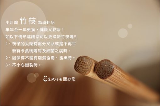 ‧收到商品清洗後可直接使用。無需水煮。 ‧清洗後,建議使用烘碗機,可烘1小時 ‧家中無烘碗機建議可曬曬太陽 ‧竹筷為消耗品,請定期更換 ‧如有一下情形建議更換竹筷了喔: 1.筷子的尖端有點分叉狀或是不在平滑有卡食物殘削。 ((食安很重要的,為了家人的健康,請定期更換好筷) |