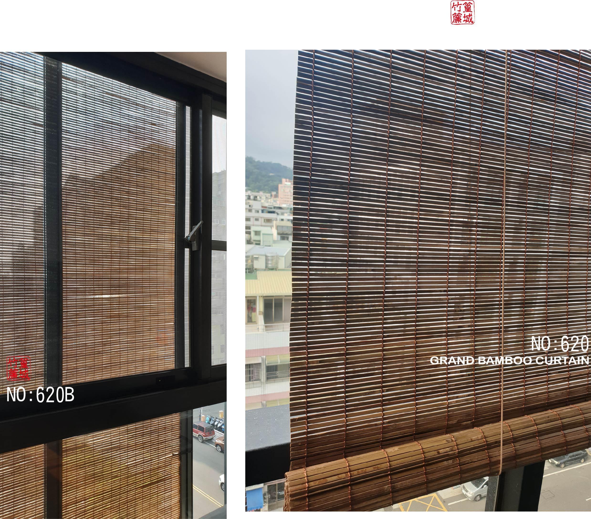 附註:620/620B一律戶外處理,內含防水膠與下零件,不用另外加購。 ★皆可製作成可拉、可放、可固定高度的下捲式竹簾。 ★可製作”不拉”的掛簾(一般用於:屏風/遮物/壁掛..等)下邊後請註明。 ★可訂製不在加工的”純竹簾”(一般用於:DIY/桌墊/茶席..等) ★如果沒電鑽但想DIY:可去”特力屋”租借:約一天150元,使用2分鑽鑽頭。(相關資訊請洽特力屋。) ★篁城竹簾沒有提供:丈量安裝與施工..但丈量很簡單您可以直接量寬*高…您需要多大就直接製作.一律訂製..竹簾的木柄零件拉繩都會在工廠先安裝好..您收到直接鎖上我們附的掛勾(壁虎)之後掛上去即可. ★不想自己施工:可請附近的木工/水電/裝潢行..等工班施工,一件只要打2-4個洞即可.之後竹簾掛上去即可非常簡單。 ★零件拉繩等消耗品:戶外用久了難免需更換零件~可自行寄回/親送更換,也可直接購買零件自行更換~非常簡單,有提供DIY安裝說明書.(酌收材料費,另行報價,請問與答詢問.) ★620B:1CM寬竹片.因竹材只有直纖維.裁減後寬竹片可能有微裂的現象,竹皮韌性好也有可能會翻或微微捲曲,能接受才選這款620B,以上狀況不會影響使用與耐用度~請放心。請注意:訂製商品無法退換貨喔
