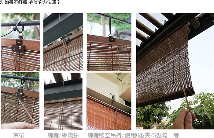 .,您如果們有特別註明,都會幫您直接鎖在竹簾下方,如要自行安裝下零件,請下單後備註。