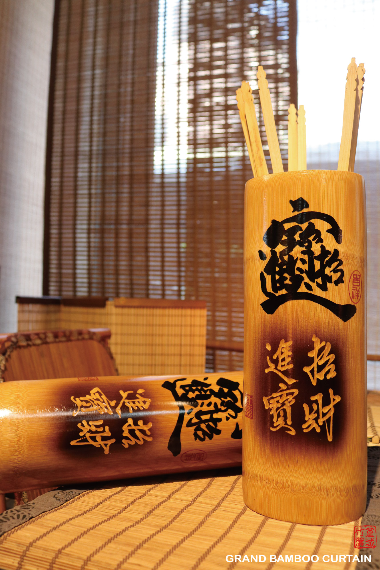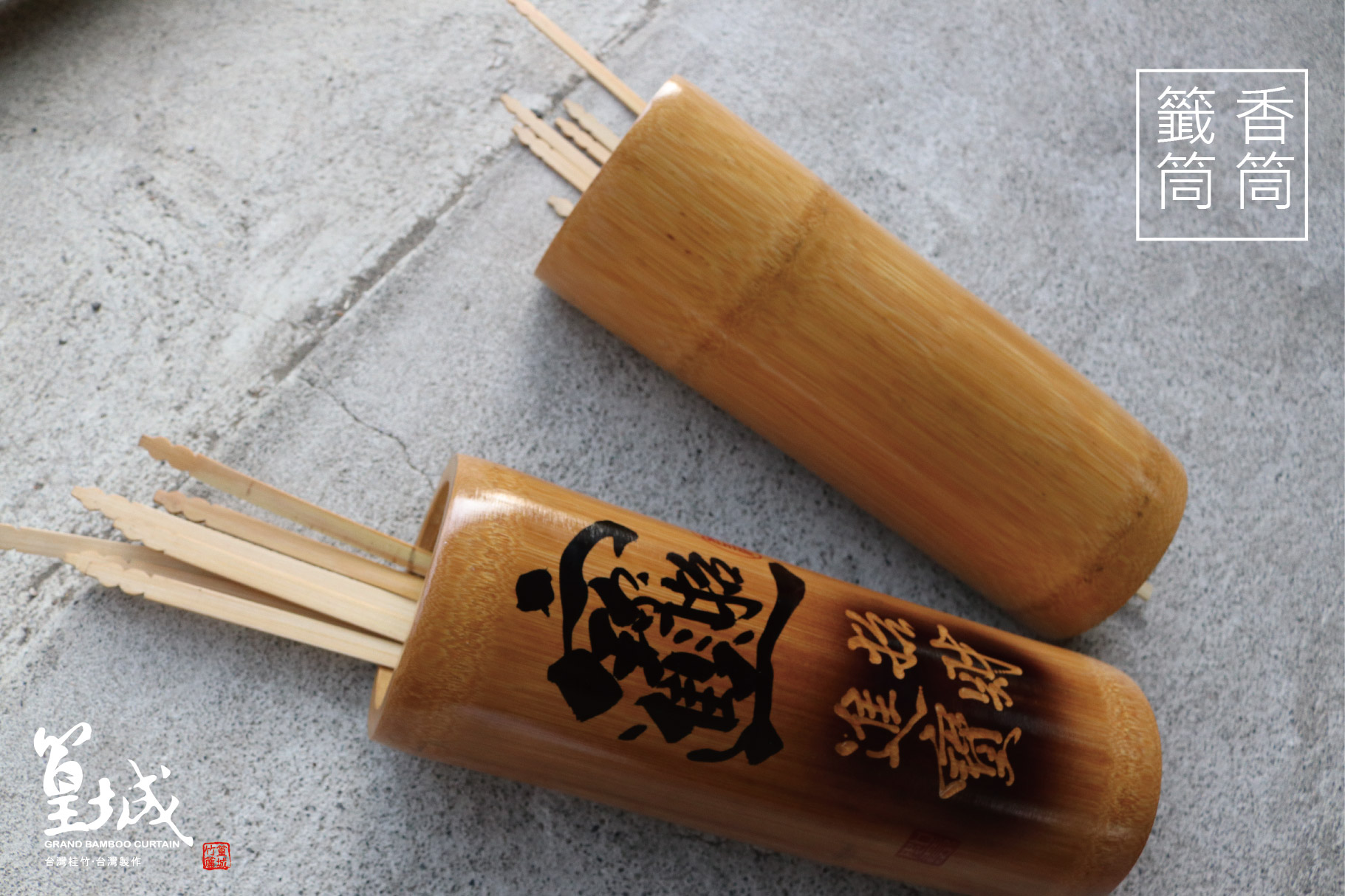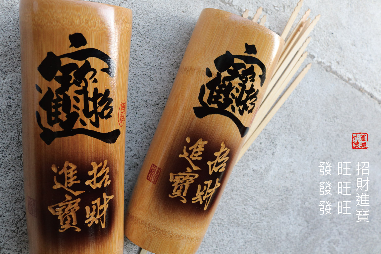 篁城竹簾〔招財進寶香筒-燒黑刻字款〕 |