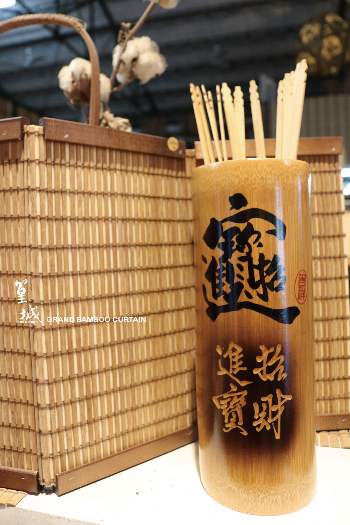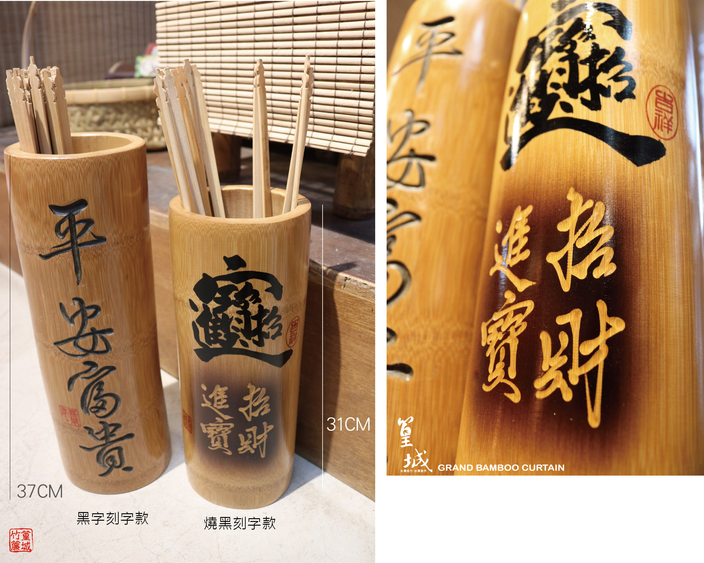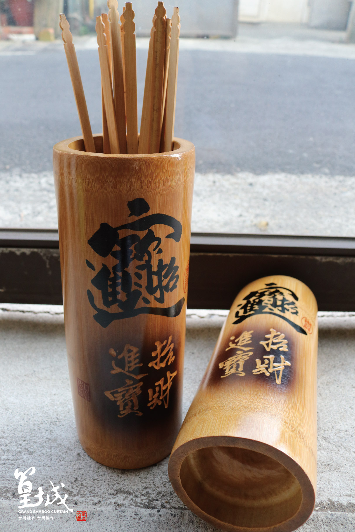篁城竹簾〔招財進寶香筒-燒黑刻字款〕 |